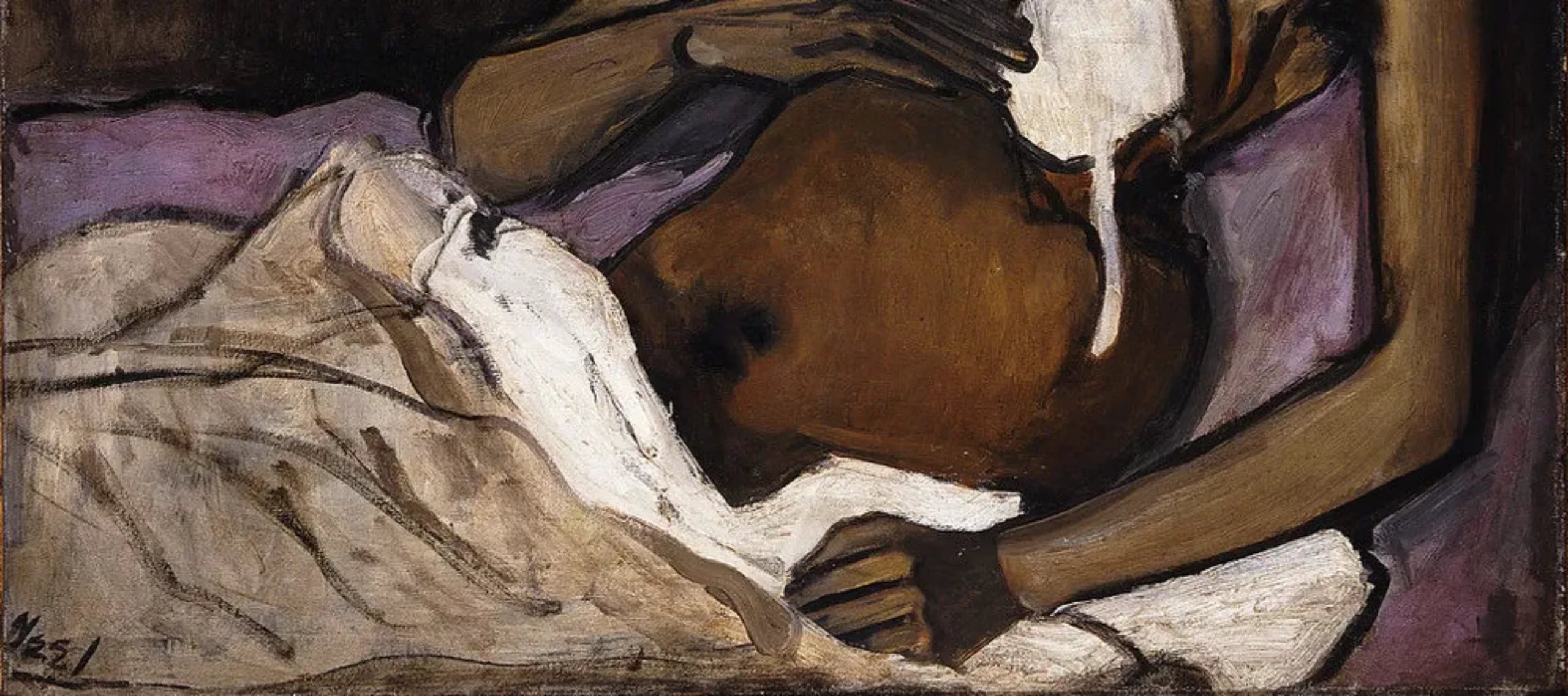 Neel cultivated her own artistic style. However, she conveys her art historical acumen by visually quoting motifs and themes of earlier artists. To name a few, Negrón’s wound in T.B. Harlem evokes traditional images of the martyred Christ; Mary Cassatt’s family portraits influenced Neel’s representations of mothers with children; and Neel’s 1977 portrait of Mary Garrard resembles Young Sailor by Henri Matisse (1907).