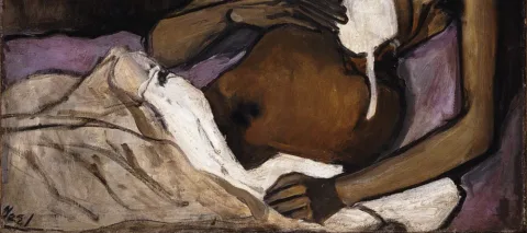 Neel often conveyed the struggles of poverty in her portraits. T.B. Harlem, in NMWA’s collection, depicts Carlos Negrón, the brother of the artist’s then-lover, suffering from tuberculosis. The disease spread easily across the overcrowded neighborhood of Spanish Harlem in New York City where Neel and Negrón lived. Neel’s 1940 portrait functions as a form of social activism with her empathetic portrayal.
