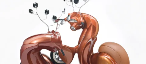 Australian artist Patricia Piccinini constructs unexpected amalgamations. Her sculptures combine human and beastly features and transform vehicle parts into wild animals. The Young Family (2002–3) and The Stags (2008), both in NMWA’s collection, have been known to simultaneously allure and repel visitors.