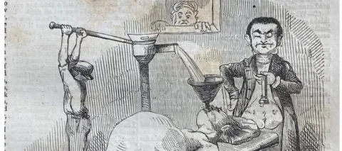 It was both a natural progression and a complete accident. Before returning to doctoral study, I worked in museums for a decade, including accessibility advocacy. I was fortunate to have wonderful mentors who helped me unlearn ideas about what it is to exist in this world within a wide range of bodies. Years later, I was browsing through a 19th-century humor magazine when I came across a cartoon series chronicling one man’s fictional struggle with 19th-century medical treatment. It included an image of a Frankenstein-esque doctor physically inflating his patient like a water balloon! The project grew from there, bringing an art history and disability studies perspective to a topic that’s usually framed in terms of science and medicine.