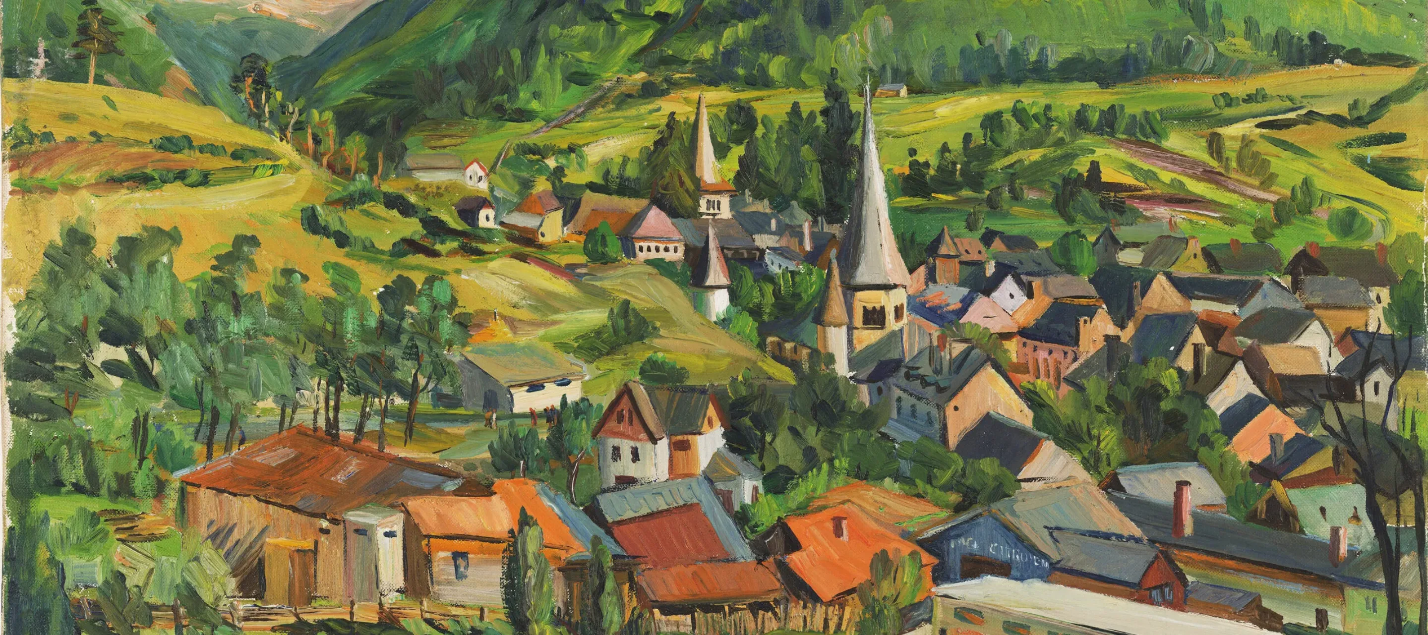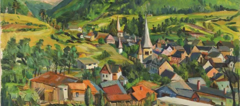 NMWA’s collection contains six works by Loïs Mailou Jones. Her colorful landscape painting Arreau, Hautes-Pyrénées (1949) was completed while the artist was on a sojourn in France. Other works by Jones are much more modernist in style, with bold colors and an African influence veering towards abstraction.