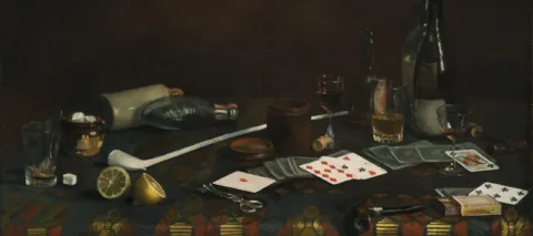 In Hirst’s personal life, her family history connects to her disdain for these masculine vices. Not only was her father an alcoholic but her uncle, Henry Beck Hirst, prematurely died, most likely from his absinthe addiction. A Gentleman’s Table becomes a larger discourse on late nineteenth-century social ills such as gambling and alcoholism ingrained in male culture. While her male trompe-l’oeil counterparts like William Michael Harnett (1848–1892) focused on more acceptable male leisurely pursuits, Hirst quietly imbues this painting and the institution it was commissioned for with criticism.