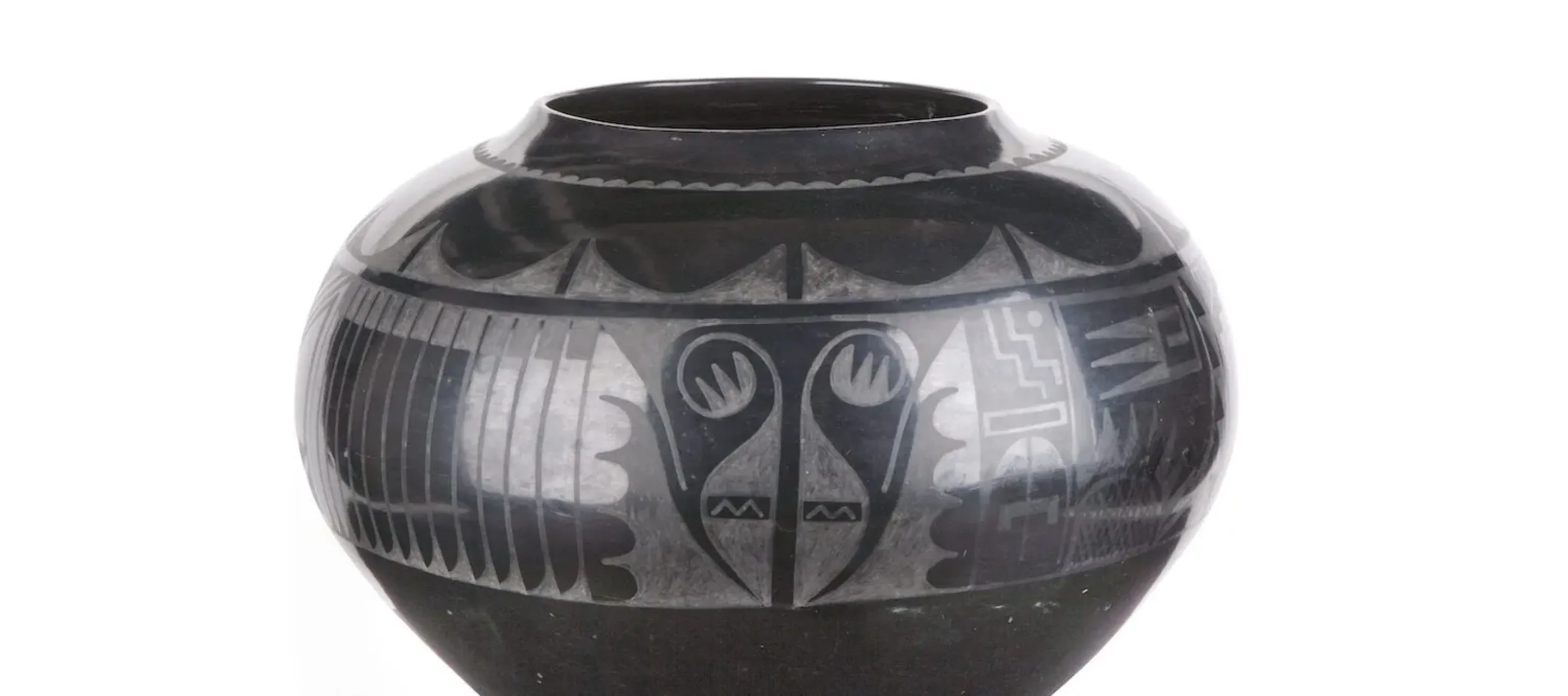 Martinez’s pots quickly grew in popularity, and her work was celebrated at art shows, expositions, and fairs nationwide. Her pots were in such demand by the 1920s that she began signing her work—the first Pueblo potter to do so. The popularity of her work was related not only to its highly skilled construction but also because it fit into the modernist aesthetic.