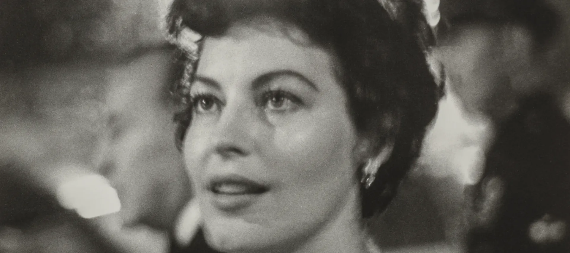 Music, movies, and celebrities were common subjects in Orkin’s photography. Largely self-taught, she honed her technique through practice and experimentation. Her strength was capturing the less staged sides of her celebrity subjects. In 1950, Life magazine hired Orkin to photograph Julie Harris’s Broadway debut in the stage adaptation of Carson McCullers’s The Member of the Wedding. In her photograph of Ethel Waters, Carson McCullers, and Julie Harris from the after party, Orkin’s cinematic eye gives viewers a sense of the joy, relief, and anticipation the actors and writer felt as they awaited reviews. In the black-and-white image, McCullers rests her head on Waters’s chest. Waters has an amused expression, and McCullers looks concerned, lost in her own thoughts. Harris, at the right of the image, raises an espresso cup to her mouth while holding a lit cigarette. While the performance was the marquee event of the night, Orkin skillfully captured this more revealing moment.