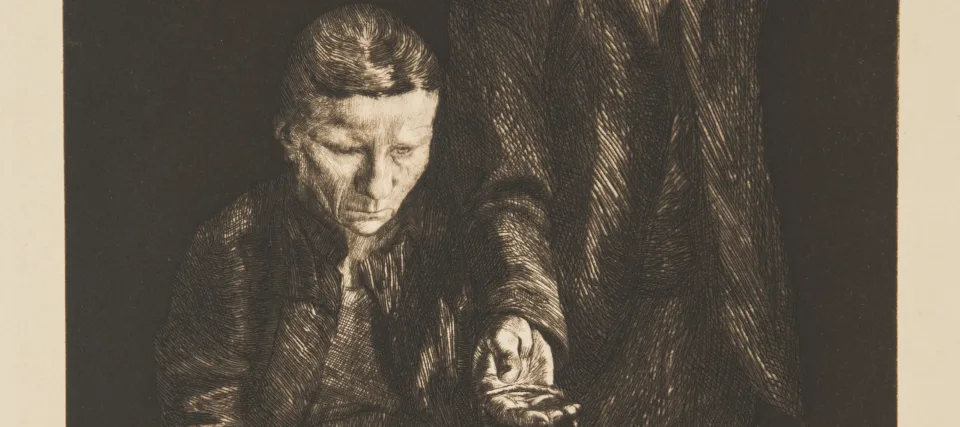 A bizarre aspect of Kollwitz’s initial inclusion in Degenerate Art is that the Nazis appropriated her work for their own propagandistic uses on multiple occasions. As recalled by Kollwitz’s friend and fellow artist, Otto Nagel, the Nazis reprinted her series Hunger, claiming the images showed victims of communism, and reproduced Kollwitz’s print Bread! without crediting the artist: they gave the image a fake signature, St. Frank.²