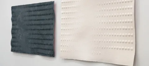 My papermaking is a study in how we fall apart, expose our hearts, heal, and come back together. All of my work is made from discarded bedsheets and T-shirts, fabrics that come in direct contact with bodies. I use these materials for environmental reasons, but also because I believe the fibers hold stories. The colors in my work result from working with the original fabric color or mixing two or more different color pulped fabrics together without the addition of pigments or dyes. Combining different colored fibers creates vibrating fields of color and presents a metaphor for interdependence.