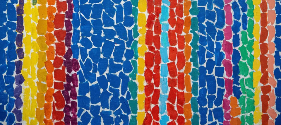 Thomas gained renown late in life for a signature abstract painting style featuring colorful rows or circles of lozenge-shaped brushstrokes. She emphasized nature as her primary source of inspiration. Titles such as Iris, Tulips, Jonquils, and Crocuses reflect her never-ending fascination with the colorful interplay of flowers and other natural phenomena outside her window. Orion, named for the constellation, is part of a series of paintings sparked by her wonder and enthusiasm for space exploration.