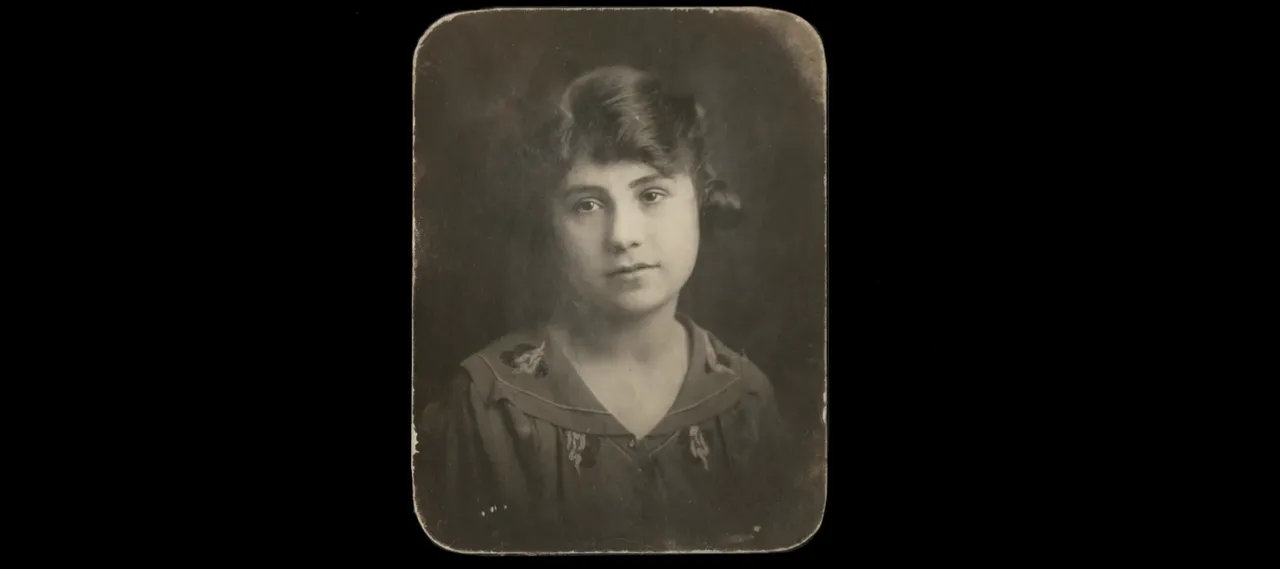An antique sepia photo portrait of a light-skinned woman with brown hair staring longingly at the camera.