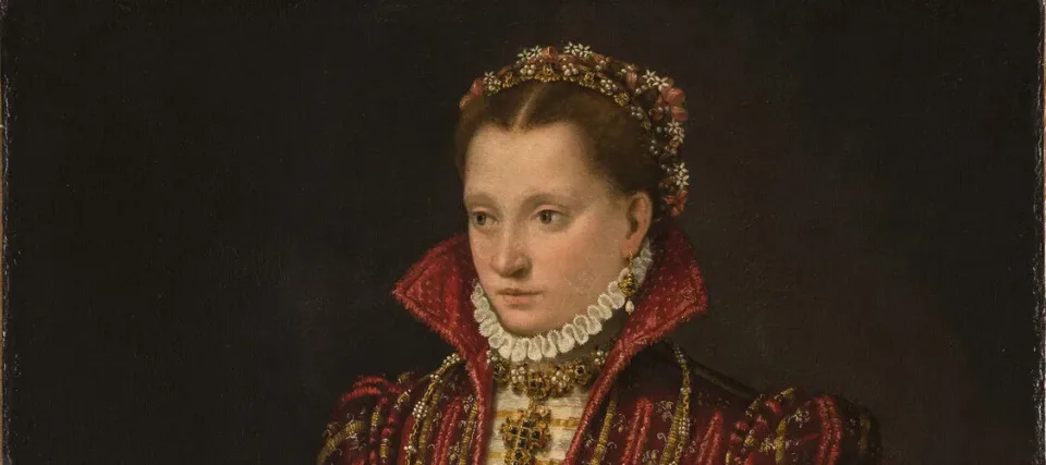 The baby’s aristocratic background is depicted through exquisite white clothing and inlaid cradle; however, the cradle is reminiscent of a catafalque and it has been observed that the painting may depict a deceased newborn. Fontana was the mother of eleven children and painted several children’s portraits, but as Vera Fortunati suggests quoting from P. Aries Padri e Figli nell’ Europa Moderna, 1960, “the appearance in the sixteenth century of the portrait of a dead child represents a very important moment in the history of feelings.” Both paintings travelled in 1998 to Washington for NMWA’s exhibition Lavinia Fontana of Bologna, 1552–1614 (February 5–June 7, 1998).