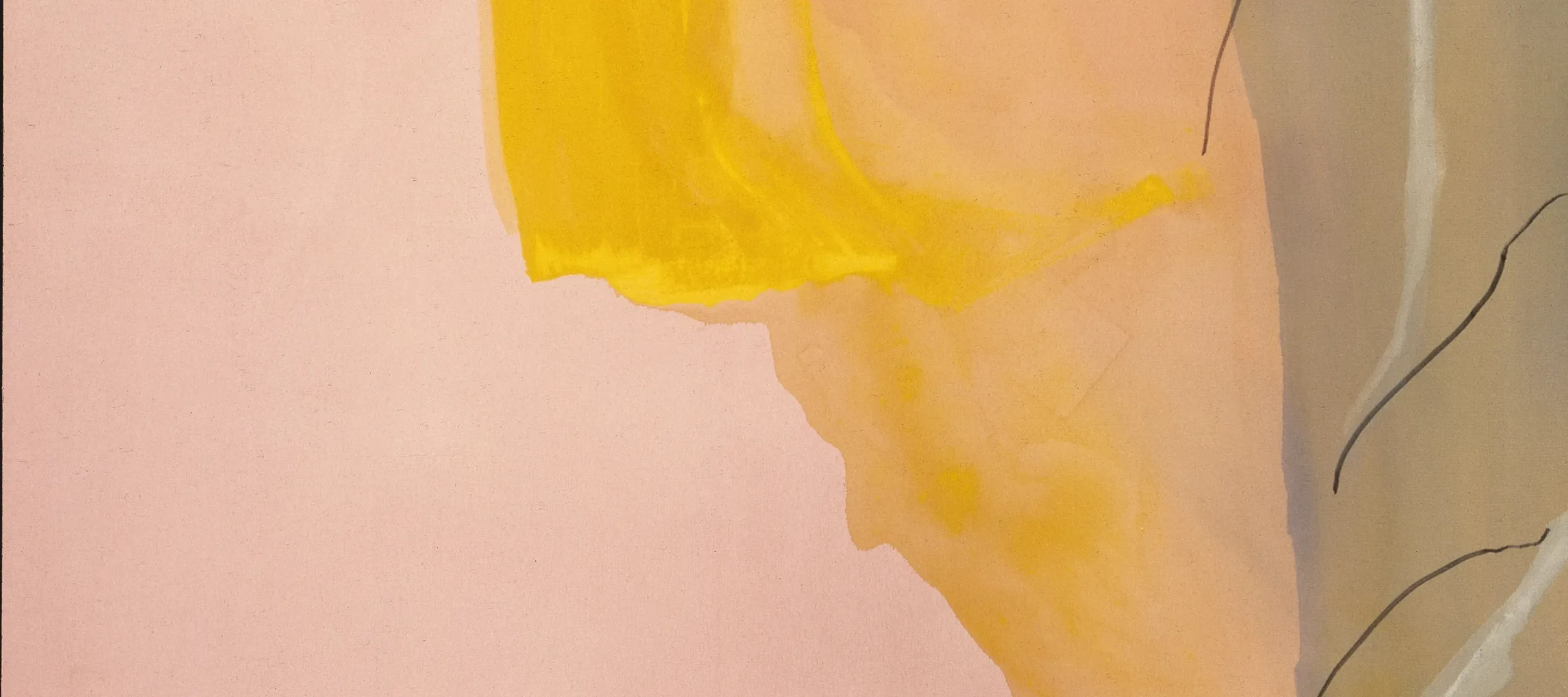 Part of the Abstract Expressionist movement, Frankenthaler created paintings like Spiritualist by pouring thinned pigment onto an unstretched canvas spread on her studio floor. The paint soaked into the raw fibers of the untreated canvas, staining the fabric. She let her colors flow freely into shapes, manipulating them only minimally with her brush or fingers.