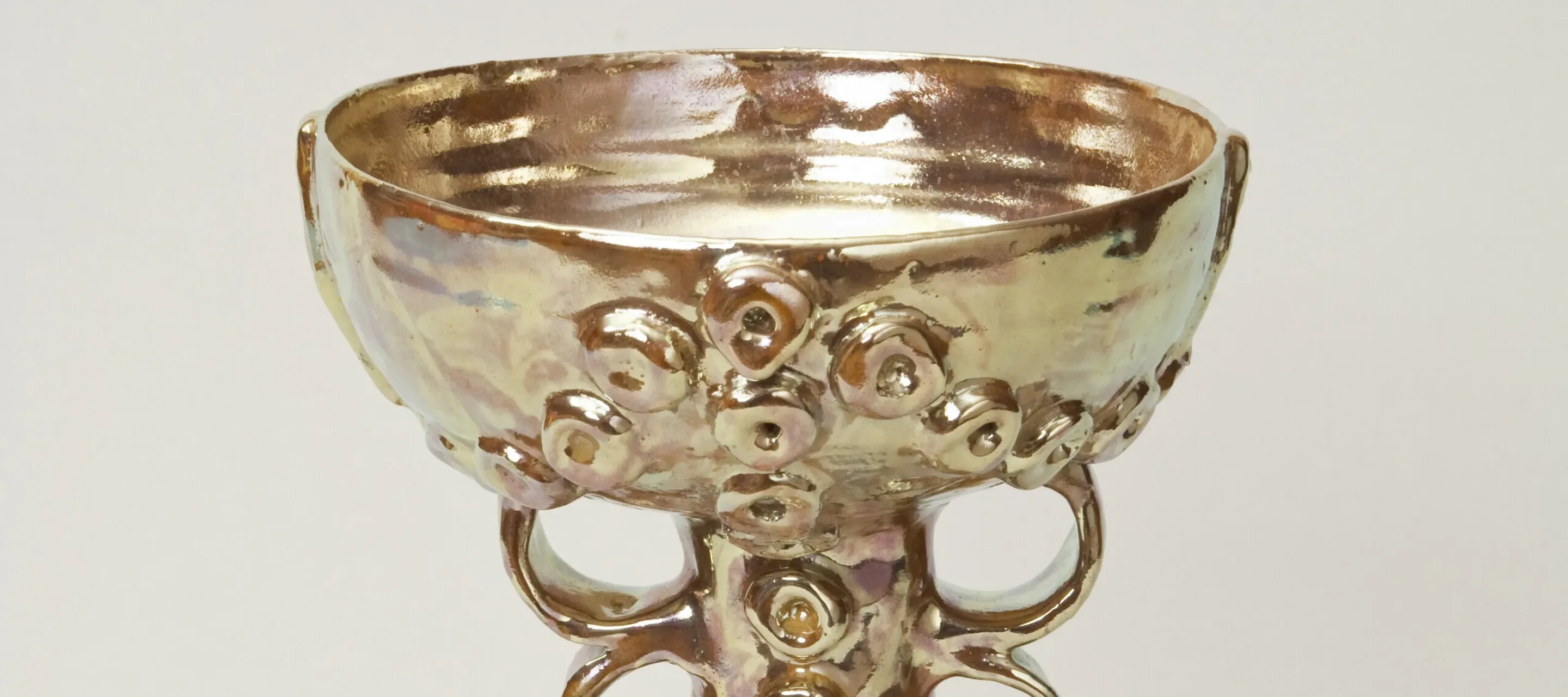 Beatrice Wood, Gold Chalice, 1985; Earthenware, 12 x 8 7/8 x 8 1/4 in.; National Museum of Women in the Arts; Gift of John Deardourff and Elisabeth Griffith; © Beatrice Wood Center for the Arts/Happy Valley Foundation