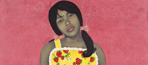 The use of gray for Amy Sherald, as with Hesse, plays a critical role in her art. While Hesse explored geometric forms and the effects of light, Sherald (b. 1973) uses mono-chromatic elements to deconstruct social codes about race. They Call Me Redbone, but I’d Rather Be Strawberry Shortcake (2009) depicts a young girl in the artist’s signature grayscale. The artist’s works are often grounded in self-reflective perspectives, as she herself experienced being labeled the term “redbone,” slang for a biracial or light-skinned person of African descent. Through the absence of skin tones associated with Black identity, she challenges common perceptions of racial markers, instead choosing to represent Blackness through her own unique lens. The figure of the young girl in the lemon yellow dress almost appears to float in space against the bright pink background, seemingly unconfined by societal and cultural borders.