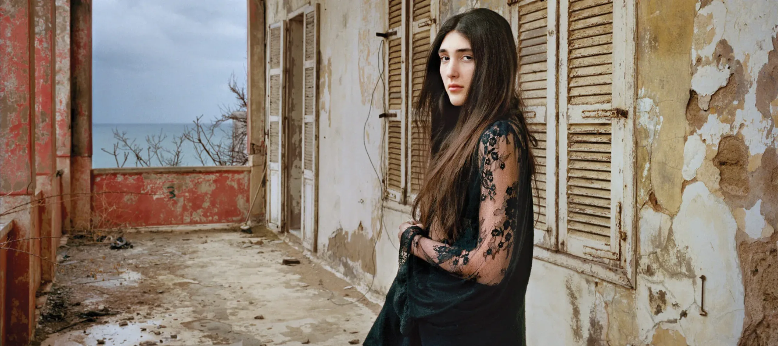 Owing to her initial training as an architect, Matar is acutely perceptive of the character of a place, teasing out its unique qualities in her sensitive portraits. Lea #1 was photographed at La Maison Rose, a dilapidated 19th-century mansion in Beirut, abandoned since the Lebanese Civil War (1975–90). Lea stands in an exterior passageway overlooking the Mediterranean Sea. Signs of neglect and decay throughout the composition contribute to the photograph’s melancholic beauty. For Matar, this image is a symbol of a new generation—young people who did not personally experience the war but have grown up with its collective memory.