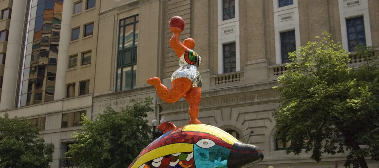Niki de Saint Phalle (whose work has been showcased in NMWA’s New York Avenue Sculpture Project) is exceptionally popular in Hannover. Her La Grotte, Nana figures and other large public sculptures are on permanent display in the Great Garden of the Herrenhausen, and the Sprengel museum includes several galleries of her prints, drawings and sculptures. The Landes Museum (Hannover State Museum) celebrates Paula Modersohn-Becker. Three galleries are devoted to her paintings, including Girl in a Black Hat.
