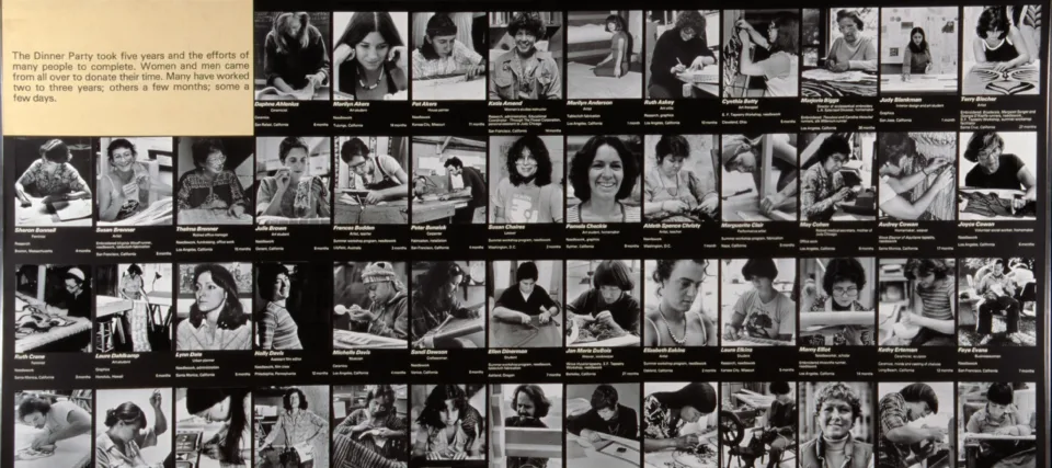 The Library and Research Center’s digitization of Chicago’s visual archives is ongoing. More than 3,600 items have been processed and uploaded to the portal to date. Items include photographic negatives, contact sheets, and copy prints related to The Dinner Party; slides of Chicago’s early artwork; documentation of her major bodies of work; and copies of her lectures. The collection will grow over time as more materials are received from the artist’s studio. Browse the portal and NMWA’s visual archives.