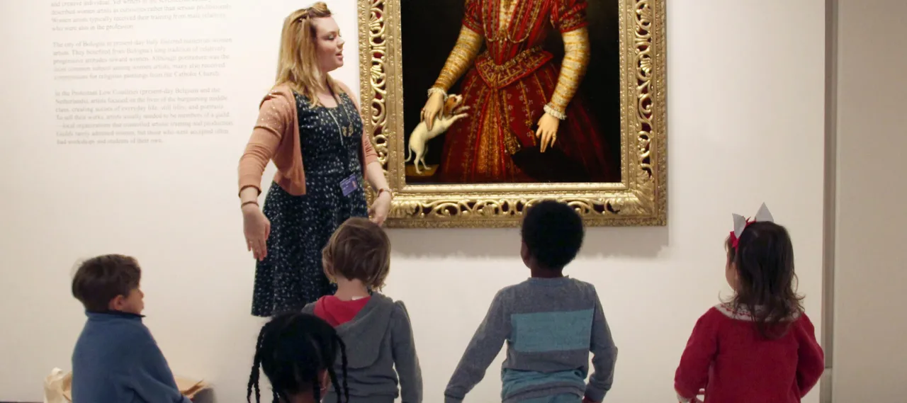 The art-making, movement activities, and stories captivated our young audience. The preschoolers found the dog in Lavinia Fontana’s Portrait of a Noblewoman and the unicorn in Amy Sherald’s It Made Sense…Mostly in Her Mind easy to talk about, as well as the eye-catching outfits of each painting’s subject.