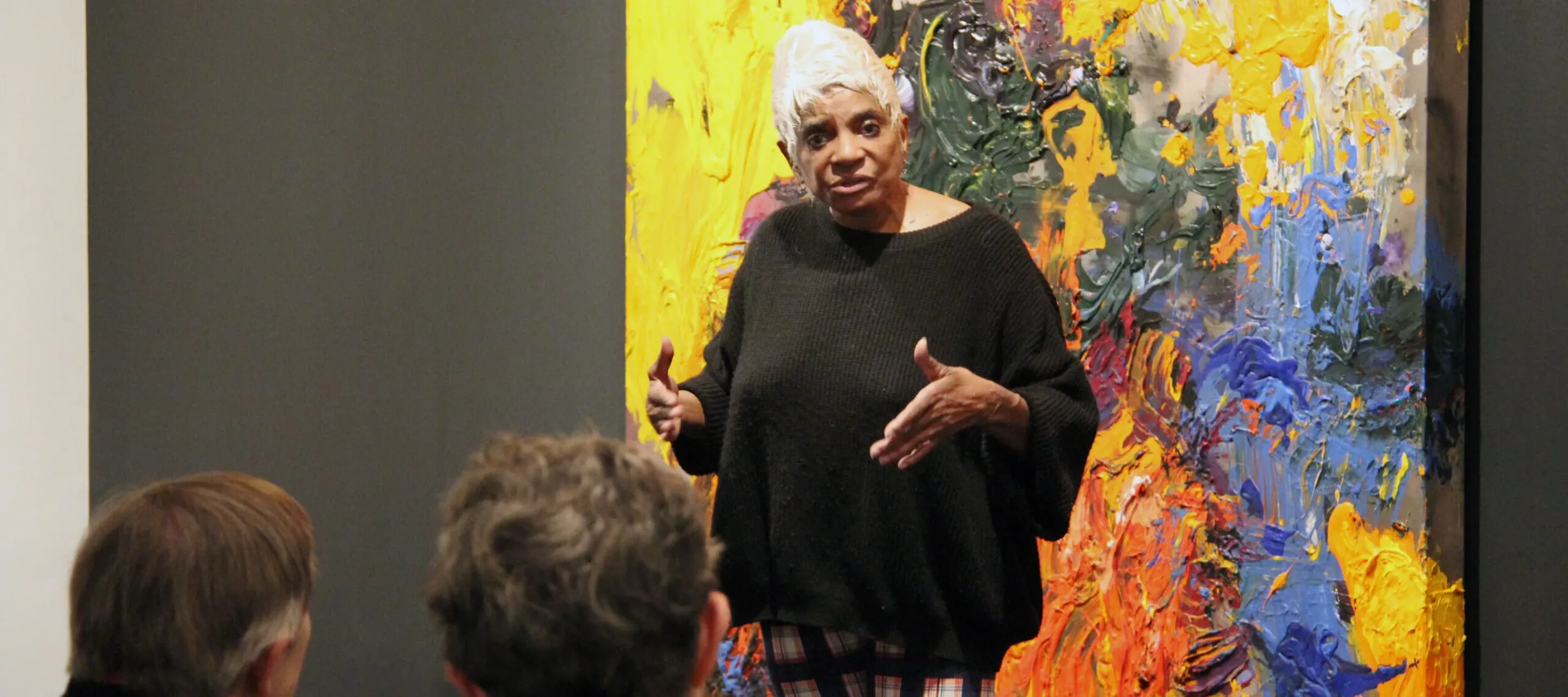 Snowden’s improvisational painting style “comes from within, not an outside force to change styles,” says the artist. “Although I am able to paint in different styles, as I learned in the thorough training at Howard University, expressionism is my style. It is a communication between the canvas and me, which is governed by the intellectual and emotional states acting as one, a unification; examination of the subject matter and its treatment, figurative or without figure.”