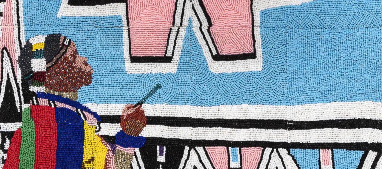 Clark’s beadworks remind us of the importance of touch, whether intimate or across distance and time, and of the creative energy in an artist’s touch. She chronicles this story that stretches beyond generations, of cultural connections where glass beads, used for adornment, currency, and prayer, can still function as ancestral bonds among African Americans and the African diaspora.