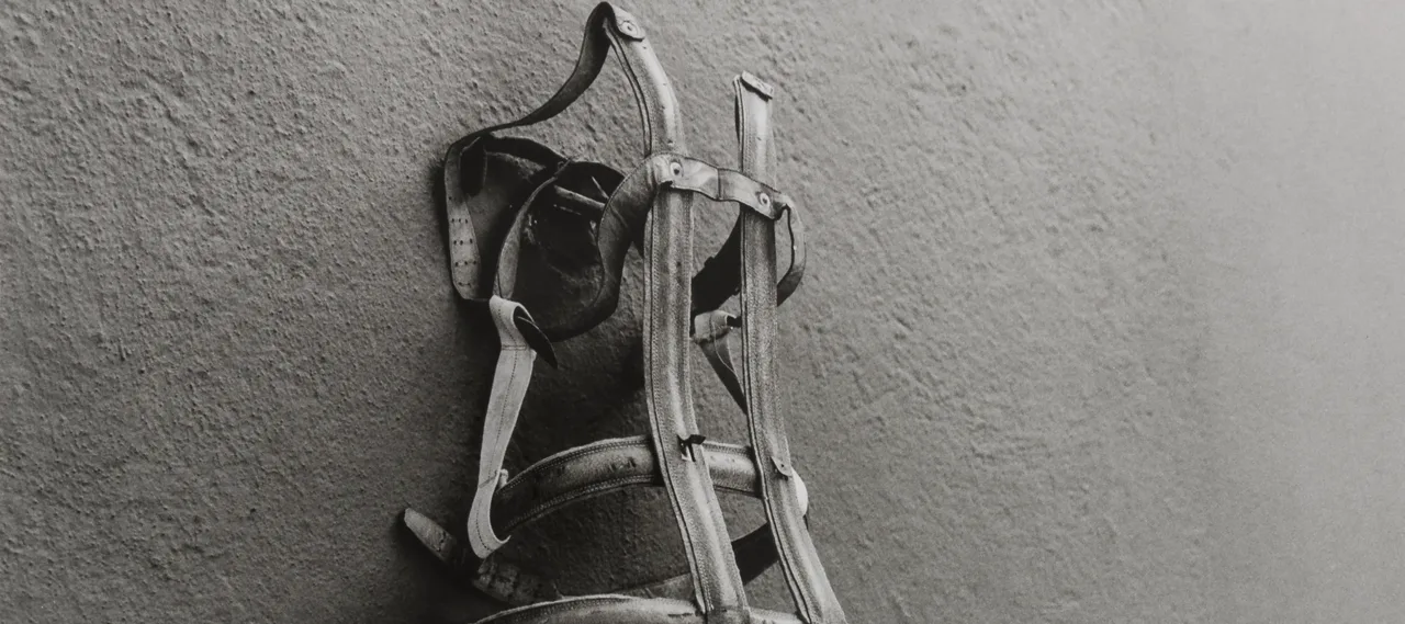 Other objects in Kahlo’s bathroom included sunglasses, nail polish, shoes, political imagery, and clothing, however, Iturbide primarily focused her series on those objects that related to the artist’s pain. This choice echoes themes that have surfaced in Iturbide’s own work: death on both personal and cultural levels; illness, including a focus on ailing cacti; and ritual, including animal slaughter. Iturbide does not turn away from pain, but instead looks unflinchingly at it. In one of Iturbide’s photographs, Kahlo’s hospital gown hangs against the bathroom’s tiled wall, marked in many dark stains. In black and white, it is impossible to tell if the stains are blood, evidence of her suffering, or paint, evidence of her salvation.
