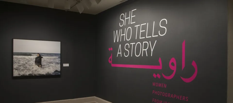 NMWA’s summer exhibition She Who Tells a Story: Women Photographers from Iran and the Arab World is organized around three themes: New Documentary, Constructing Identities, and Deconstructing Orientalism.