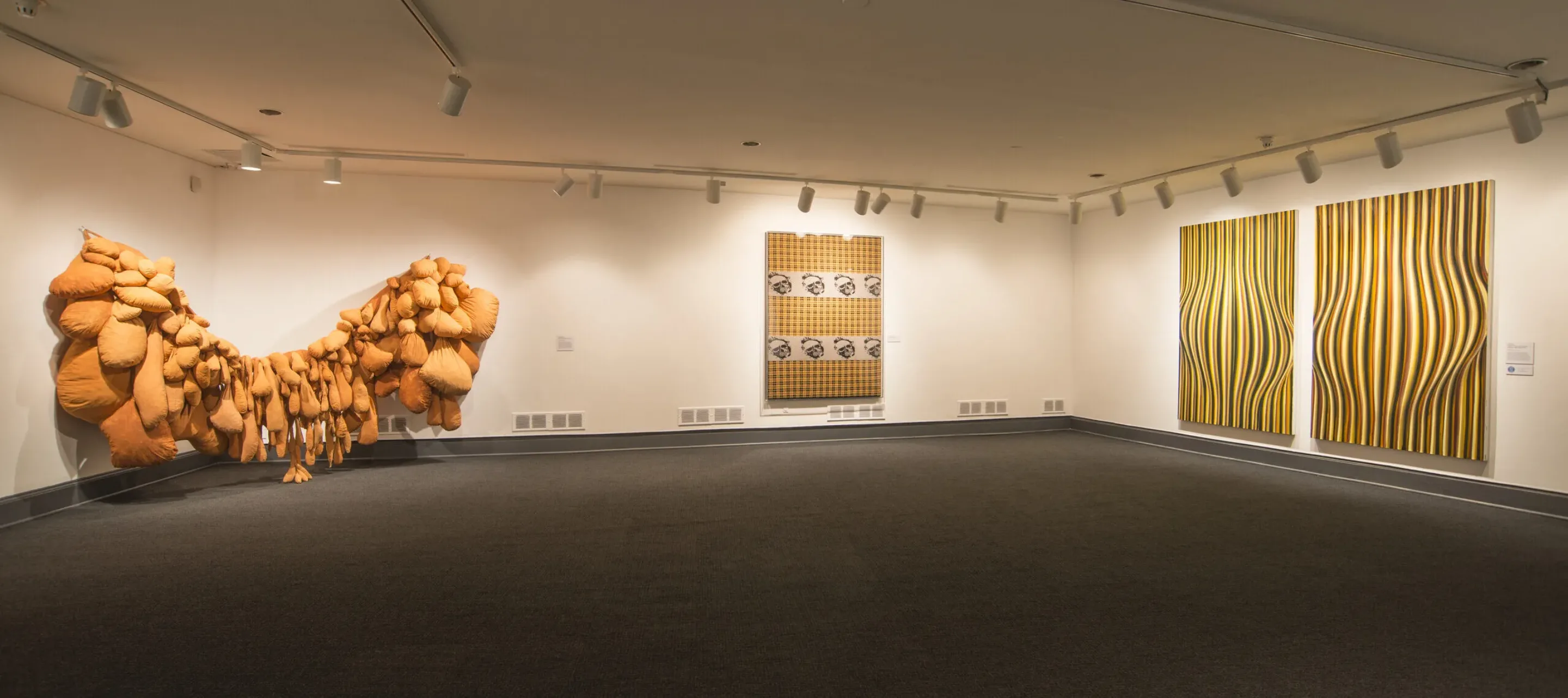 Elements of Op art and Pop art can be seen in Davie’s diptych Oh Baby #1 and #2. Seemingly unbroken, two-dimensional lines create a curvilinear illusion, conjuring images of bellies, bottoms, breasts, or lobes. Distinct from the purely retinal or optical experience offered by Op art, Davie’s abstractions allow the viewer to both “see and feel” her painting process.