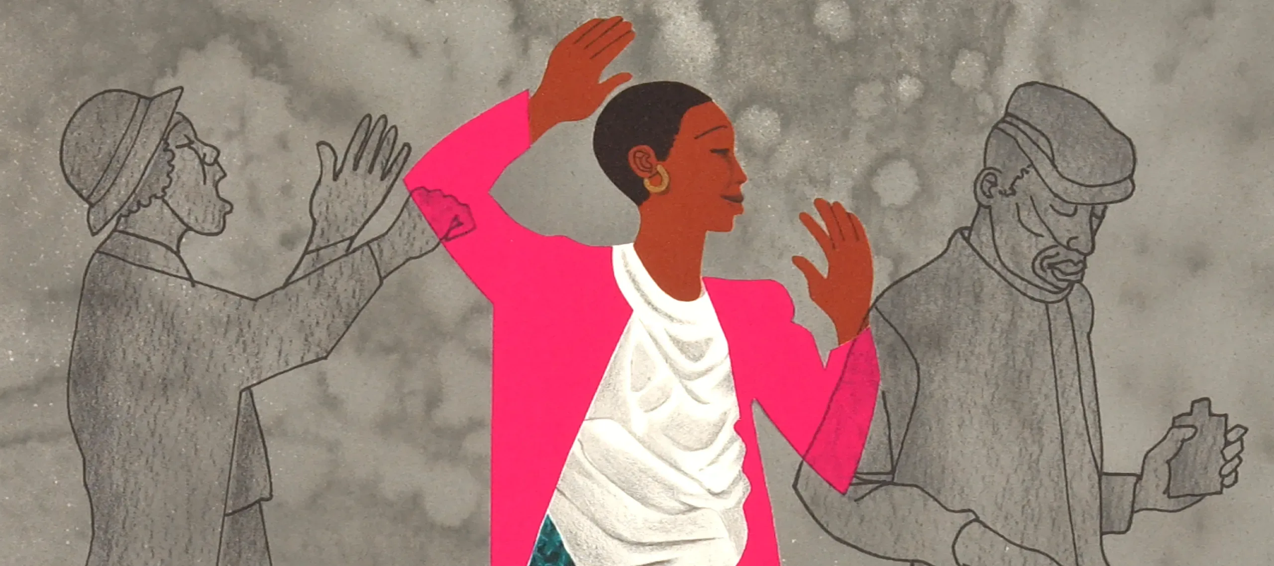 Elizabeth Catlett, Walking Blindly, 1992: Raised in Washington, D.C., Catlett studied at Howard University under artist Loïs Mailou Jones, whose children’s book illustrations are also included in this exhibition. Catlett split her time between New York City and Mexico City, primarily creating prints and sculptures. Her images explore themes of maternity and childhood as well as race, politics, violence, and voice.