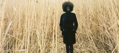 In Live Dangerously, the earth is dynamic stage that challenges us to view ourselves and our environments in new ways. Xaviera Simmons (b. 1974) uses her wide-ranging work to address questions of marginalized bodies in landscapes, particularly regarding womanhood and blackness in the United States. In One Day and Back Then (Standing) (2007), a self-portrait in which she gazes directly out at the viewer, Simmons appears tucked into a thicket of reeds, in a dark trench coat, crowned by a curly Afro and dressed in blackface. The image forces the viewer to confront complicated questions, such as the identity and intentions of the subject, and the meaning of blackface in this context. Simmons further reflects on the current social status of both black and white Americans: “How might our entire history have been different had America fulfilled its emancipatory promises to its freed slaves and their descendants instead of commemorating its defeated Confederate planters?”