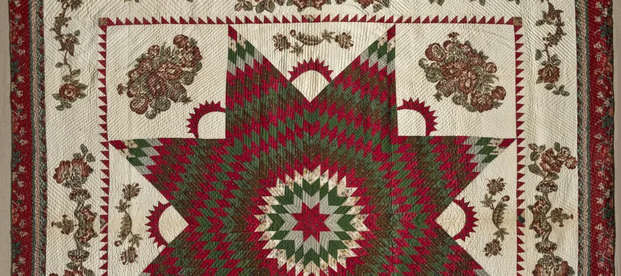 Despite their variety and their disparate origins, the other quilts on view in “Workt by Hand” similarly use the concept of the grid in nuanced and interesting ways. Though the quilt grid is flexible enough to be personalized, the examples all show their makers’ use of its underlying structure as a common thread.