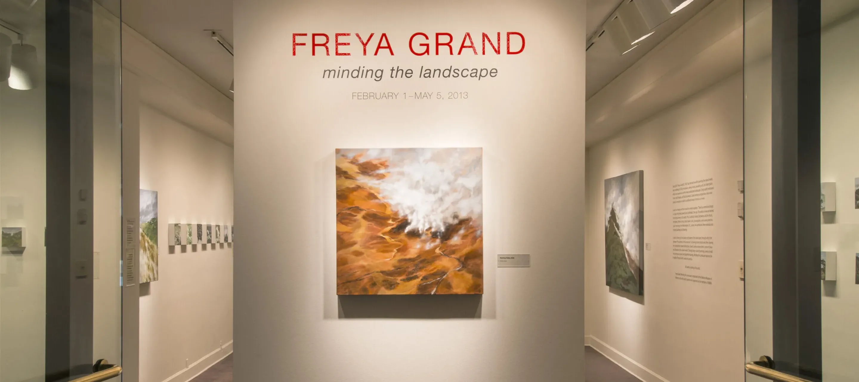 I feel that Grand’s paintings convey this connection of body and earth, depicting a sense of deep, hidden life in those waters moving over rocks, in those magnificent volcanoes and sweeping mountain ranges. In her representation of them, they seem to breathe and move, as if still in formation.