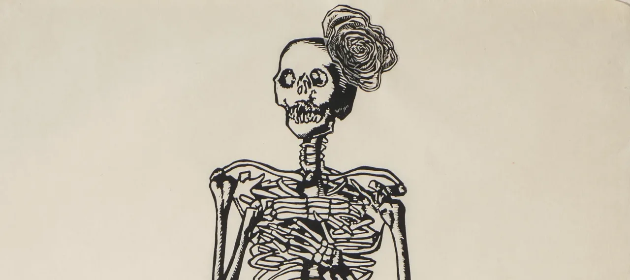 Niffenegger often portrays troubled women, both real and imagined. Like many of the artist’s tragic characters, Blow suffered from mental and physical anguish leading up to her death. Slightly morbid and somehow whimsical at the same time, the works featured in “In Dreamland” push the impending nature of death to the forefront of viewer’s minds with memento mori like skeletons and her Vanitas portfolio. In spite of this heaviness, Niffenegger imbues works like Black Roses with buoyancy that suggests a sense of hope—or at least a sense of the absurd—in the face of life’s despair.