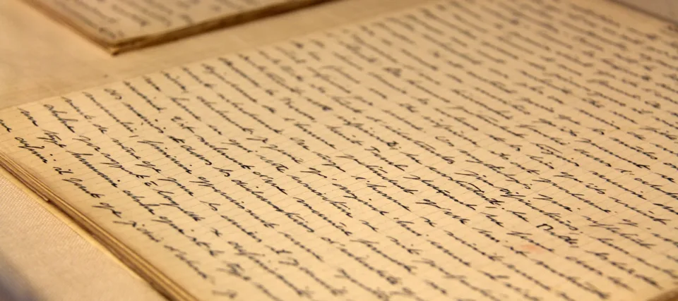 Born to a Jewish family in Nazi Germany, Eva Hesse (1936 to 1970) and her family fled Germany in 1939 for the U.S. Hesse was raised in New York and became an influential artist, working with a variety of mediums. Her diaries include not only ideas and plans for artworks, to-do lists, and accounting ledgers, but also document her illness, brain tumors, and multiple surgeries, which took her life at age 34.