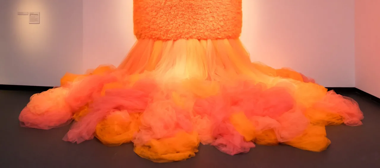 Textiles have long been part of my art practice. I believe the materials we choose speak about a way of being in the world. Textiles are soft and flexible, and they can hold an immense presence. The power I see in tulle comes from its perseverance and abundance, which is part of the language I use for this work. Working with textiles is also a way of acknowledging the women throughout history and in the present who come together to work, including the Spanish women in my family.