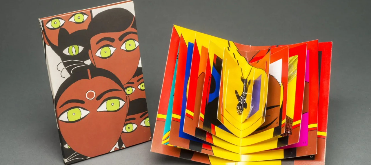 Pereira returned to India and continued to create books: innovative, vibrant works of art. Beyond using traditional materials like paper and string, Pereira incorporates mirrored surfaces and iron. Her books prompt viewers to rethink the medium’s limits. Whimsical, bold, even comical, her work tackles the complexities of contemporary life in India. The artist cites “living and breathing in India” as a major source of her artistic inspiration.