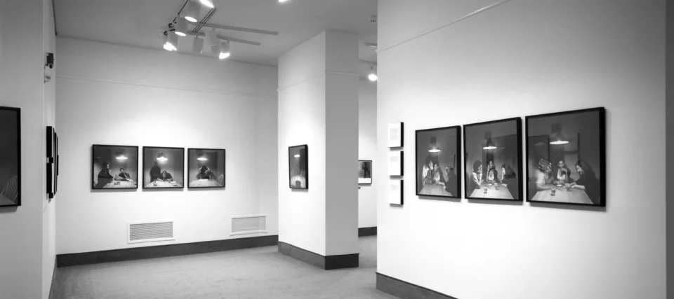 Weems’ Ain’t Jokin’ series, 1987, confronts racist humor as a process of projection and scapegoating; a mirror held up to reveal the oppression of African Americans. By juxtaposing texts with her photographs, Weems dramatically transforms racist jokes into a positive attack on negative humor. The American Icons series from the same period deals with the racist iconography of ordinary domestic objects, such as the letter holder in the form of an African-American worker. In the 1990 Untitled series, Weems employs compelling visual and verbal narratives depicting the emotional changes in a woman’s personal relationships. Photographing herself and her friends enacting scenarios from daily life, she transforms the ordinary into psychological drama.