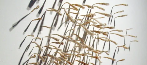 Artists featured in High Fiber stitch, weave, knit, crochet, and wind fibers or fiber-like materials into textiles, sculptures, and installations. Their expressive forms center on the themes of nature, history, and the consuming power of making.