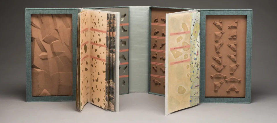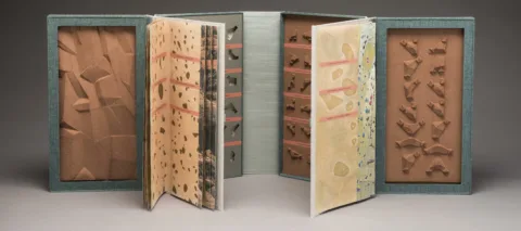 The internationally recognized artist and teacher Julie Chen creates elaborate books that call for readers to do more than simply turn pages to uncover her poetic reflections. Readers may be called upon to peer through a tunnel created by accordioned pages or flip the slats of a Venetian blind-like structure in order to read the text. Julie Chen: True to Life will exhibit more than a dozen captivating works from throughout the Californian’s 33-year career. Chen creates small sculptures of handmade papers and other materials, marrying text and complex structures to convey her contemplations on the passage of time, forms of grief, the human quest for discovery, and other deeply personal concerns.