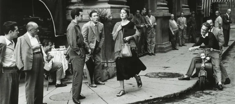 Orkin had a passion for capturing people as they were. Her photographs of tourists in Europe, Women’s Army Auxiliary Corps members, stars on Broadway, and a family in an Israeli kibbutz capture confident women in public and private spaces. The artist’s affirming images, often developed in collaboration with her subjects, reflect her purposeful inversion of the conventional “male gaze.”