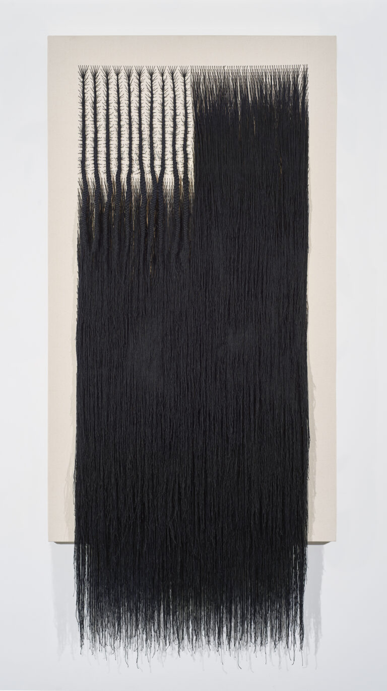 Textile and social practice artist Sonya Clark (b. 1967) is renowned for her mixed-media works that address race and visibility, explore Blackness, and redress history. This exhibition, the first survey of Clark’s 25-year career, includes the artist’s well-known sculptures made from black pocket combs, human hair, and thread as well as works created from flags, currency, beads, cotton plants, pencils, books, a typewriter, and a hair salon chair. The artist transmutes each of these everyday objects through her application of a vast range of fiber-art techniques: Clark weaves, stitches, folds, braids, dyes, pulls, twists, presses, snips, or ties within each object.