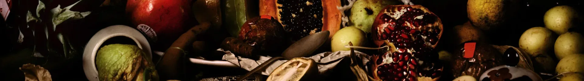 Box began the “Caribbean Dreams” series by studying seventeenth-century Dutch paintings. Observing that Black figures in historical artworks were often reduced to objects—just as spices, tulips, porcelain, and other products of imperialism were—she staged still-life displays of Caribbean fruits and vegetables. Her works echo the warm color palettes, luminous surfaces, and deep shadows of these paintings. In her images, Box reaches out to hold or bite the fruit. By placing her own body into the composition, she recasts the historically disenfranchised Black figure as an active subject.