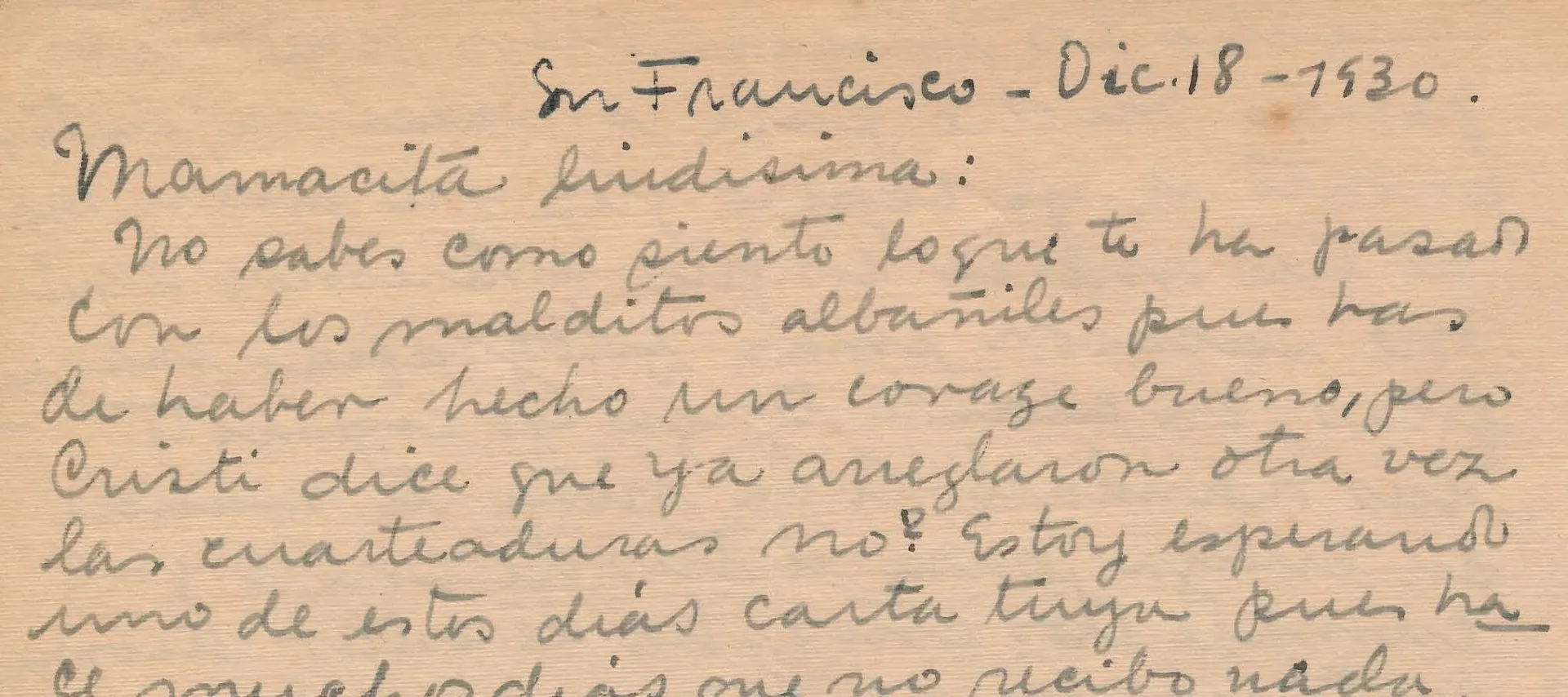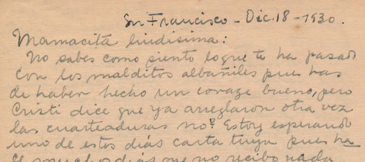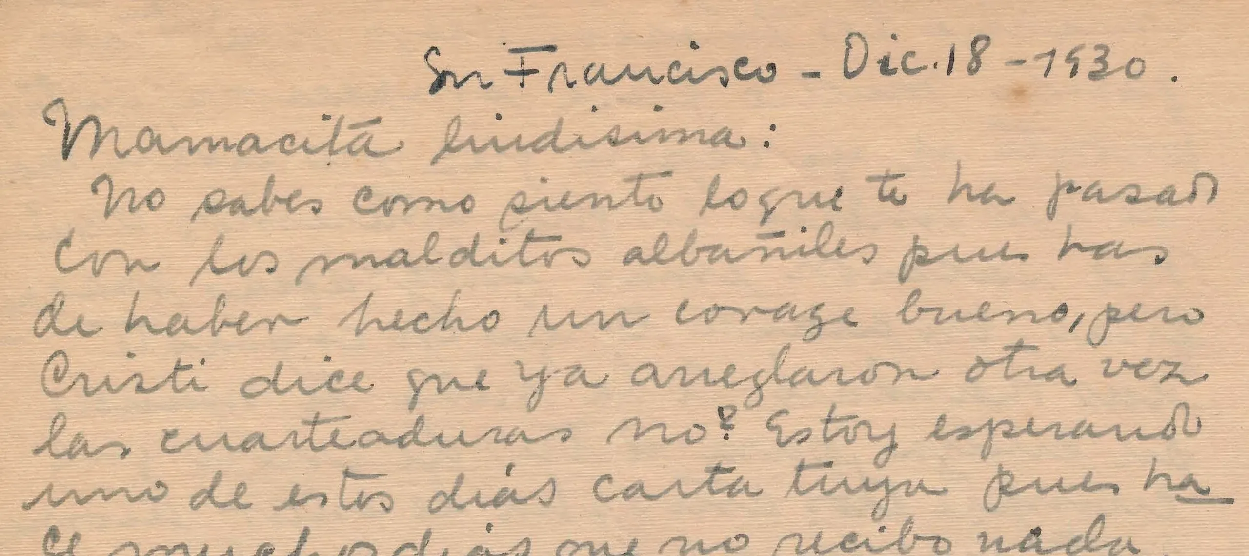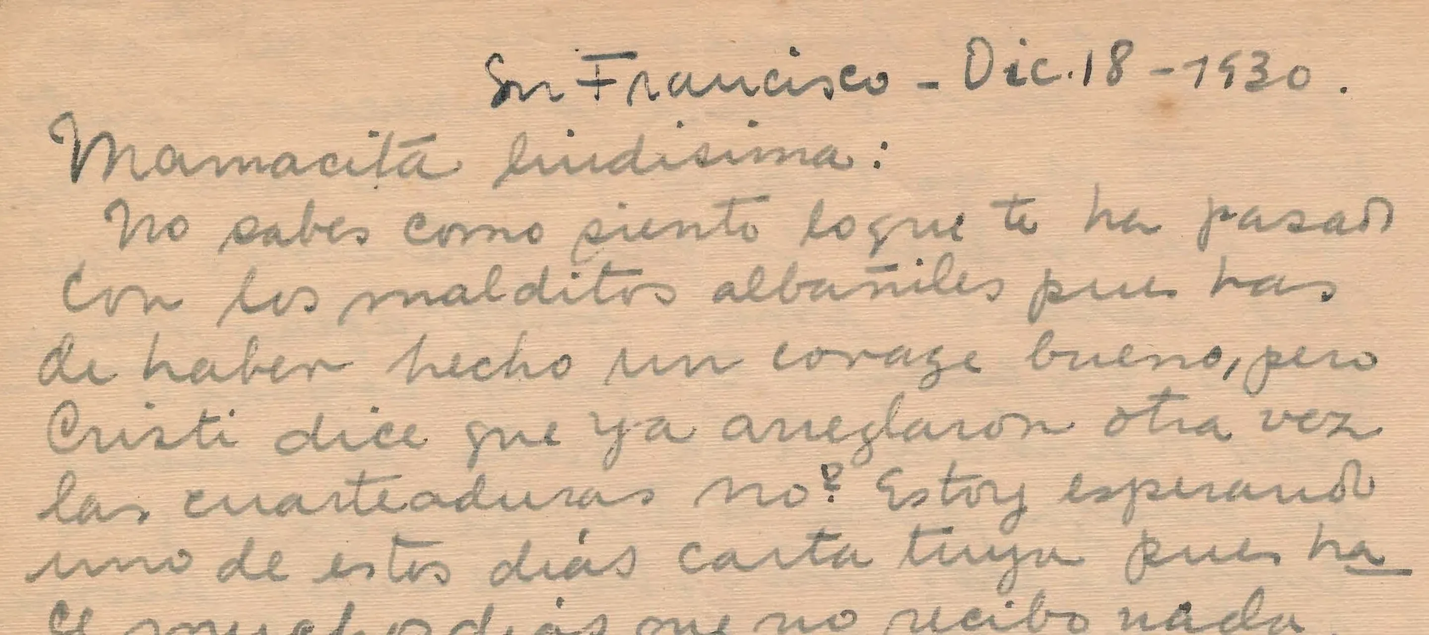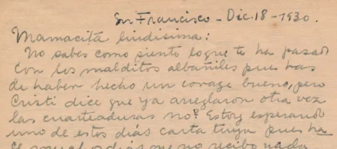 Letter from Frida Kahlo to Matilde Calderon de Kahlo, Dec 18, 1930