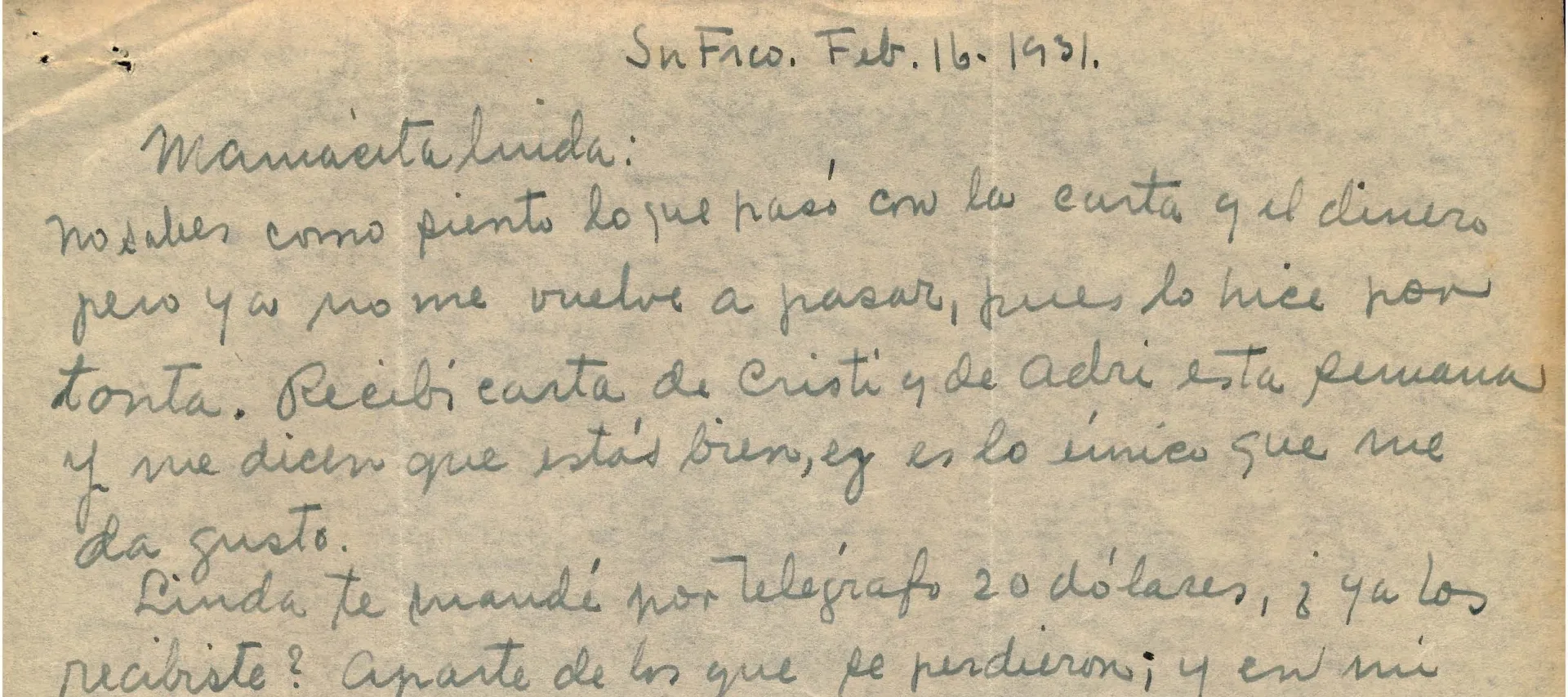 Letter from Frida Kahlo to Matilde Calderon de Kahlo, Feb 16, 1931