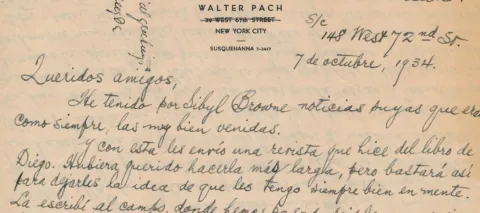 Letter from Walter Pach to Frida Kahlo and Diego Rivera, Oct 7, 1934