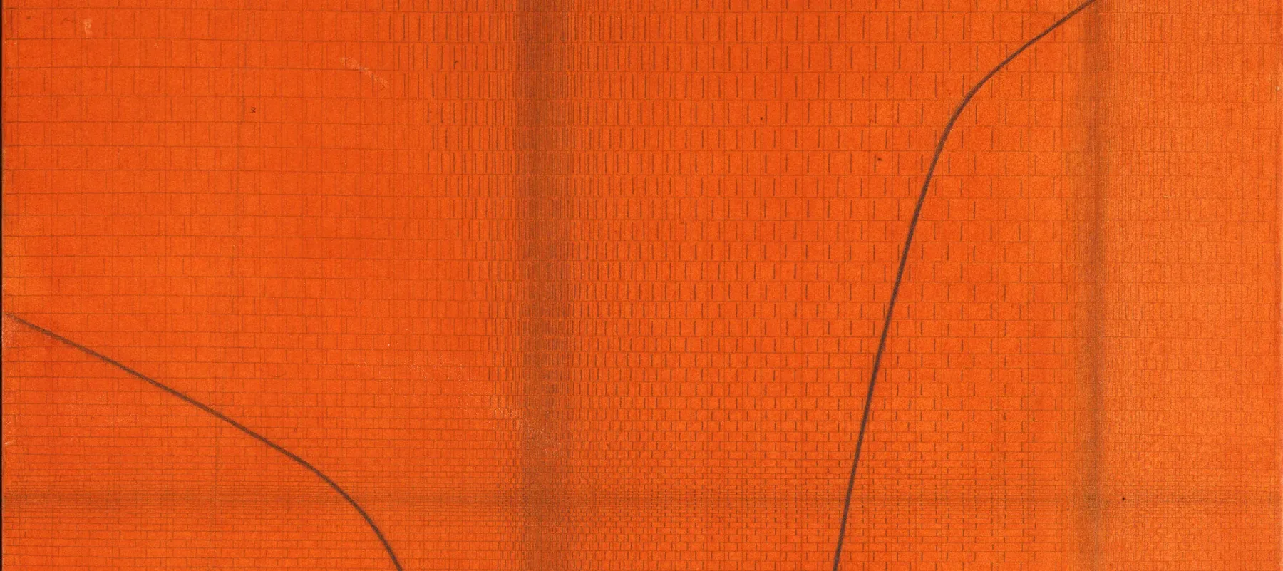 While many of her compositions resemble graphs or maps, Lazzari’s lifelong passion for music is evident in the forms that resemble musical staffs and notes. Though her gestures are precise and rigorous, she created her compositions freely and drew by hand, maintaining her personal touch. Lazzari expressed herself with spare elements, composing her works by drawing lines with pencil, ink and pastel often over washes of soft color.
