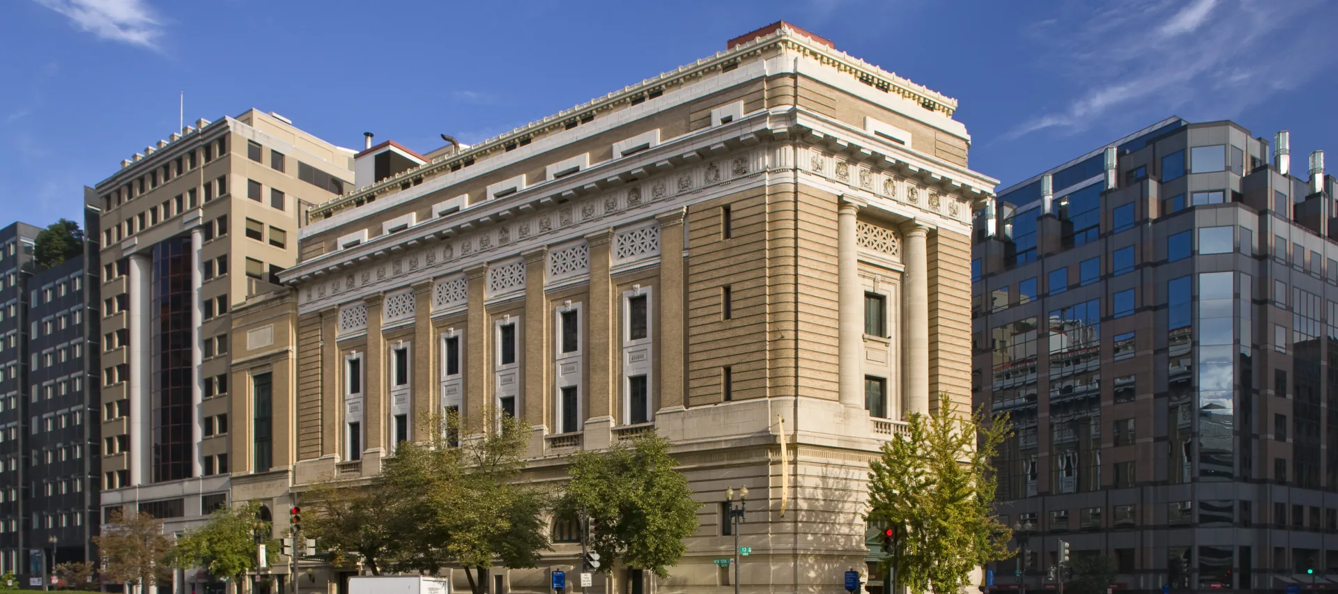Designed by the architecture firm Wood, Donn & Deming, the museum’s Classical Revival-style building was completed in 1908 as a temple for the Masons, an organization that did not allow women members. The main building is listed on the D.C. Inventory of Historic Sites and the National Register of Historic Places. The building incorporates Doric elements and Masonic symbolism.