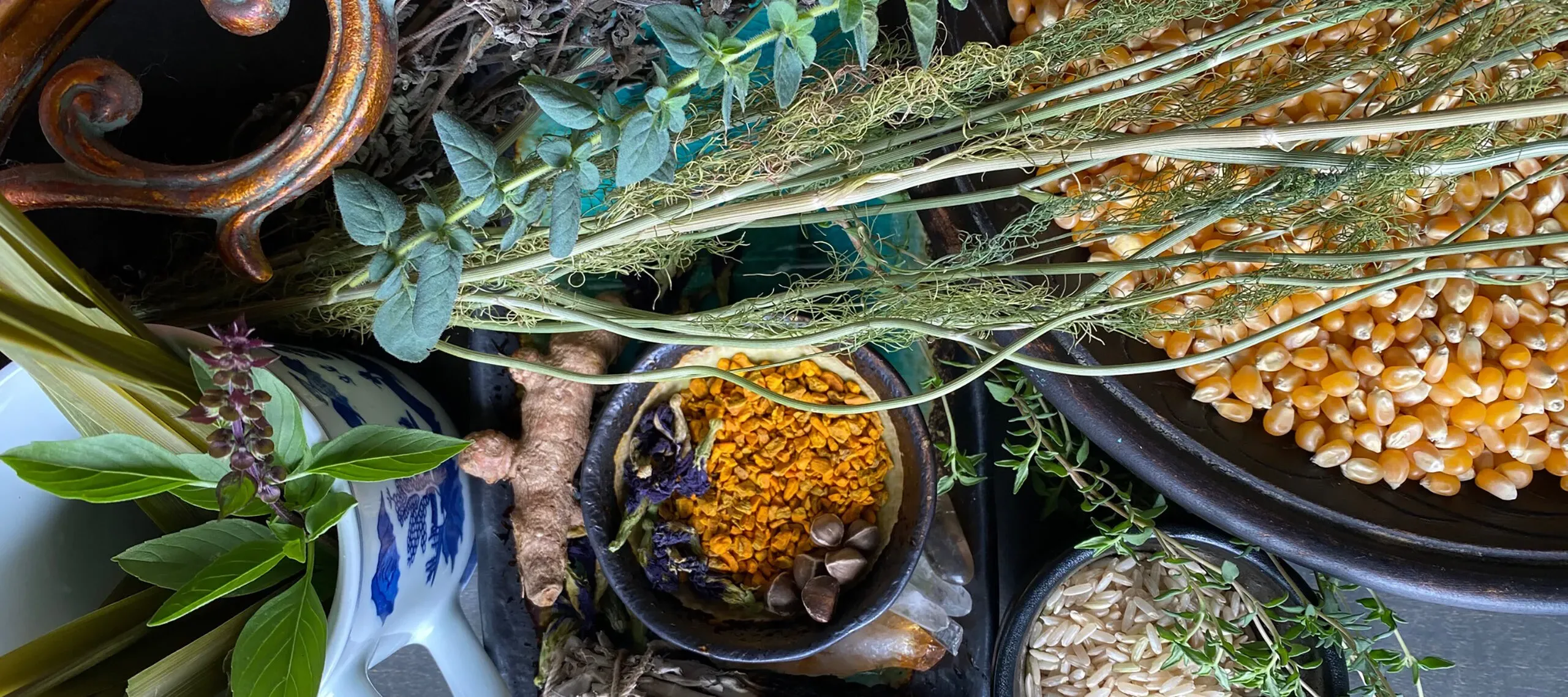 The exhibition also features interviews and content from the Curative Collective, a group of partners focusing on food—from advocacy and social justice work, to healing and restorative self-care. These organizations help ensure that the exhibition reflects and serves their communities while sharing their arts and social change resources with NMWA’s audience. Examples of Curative Collective organizations are Black Magick Sisters, Dreaming Out Loud, Herbal Aid Apothecary and STRŌB Apothecary, among others.