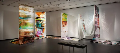 Closing on February 25, The Sky’s the Limit is the museum’s major special exhibition after a two-year renovation. This is your last chance to see 33 sculptures dating from 2003 to 2023 by artists Rina Banerjee (b. 1963), Sonya Clark (b. 1967), Petah Coyne (b. 1953), Beatriz Milhazes (b. 1960), Cornelia Parker (b. 1956), Mariah Robertson (b. 1975), Alison Saar (b. 1956), Davina Semo (b. 1981), Shinique Smith (b. 1971), Johanna Unzueta (b. 1974), Joana Vasconcelos (b. 1971), Ursula von Rydingsvard (b. 1942), and Yuriko Yamaguchi (b. 1948). The works dangle from the ceiling, cascade down walls, and extend far beyond their footprint on the gallery floor. Monumental scale and a bold approach to materiality are combined with handwork, repetition, and unconventional materials to achieve maximum impact.