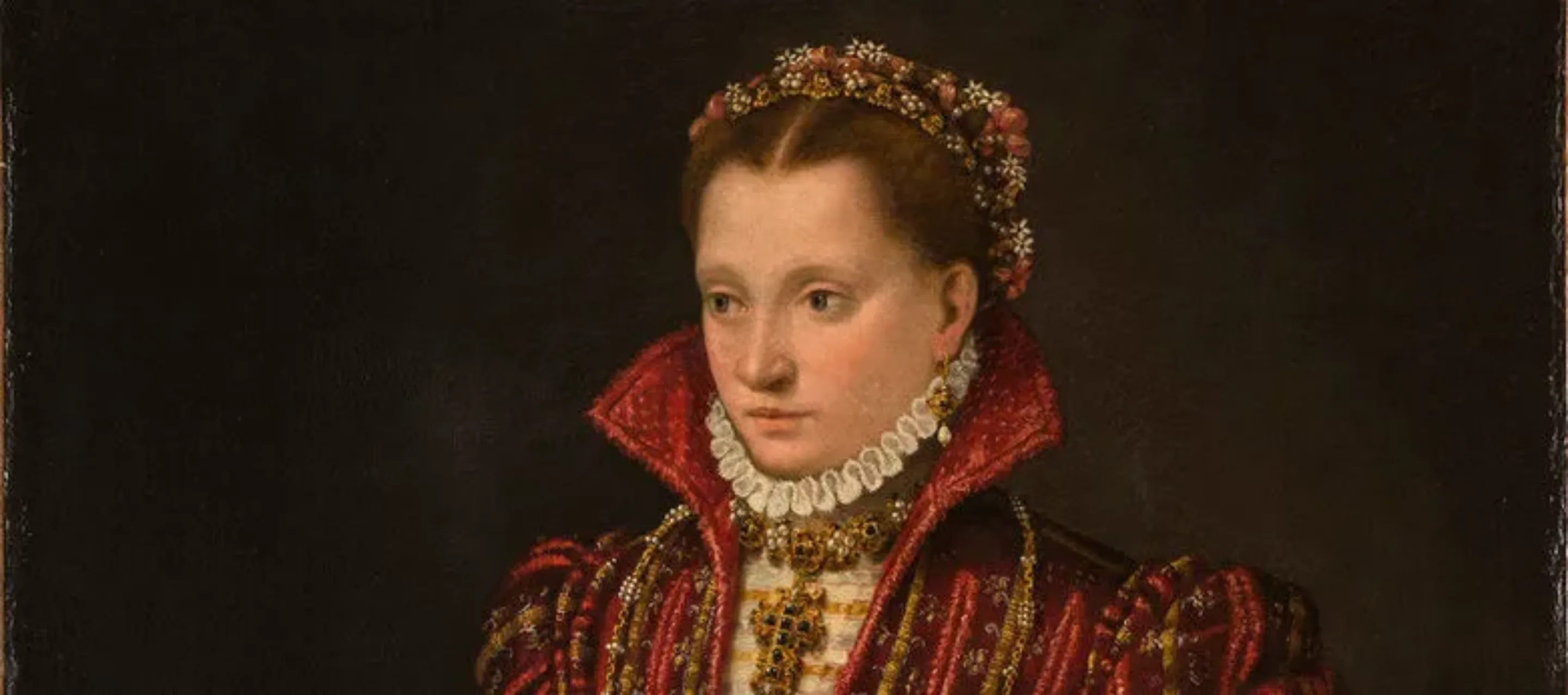 Lavinia Fontana, Portrait of a Noblewoman, ca. 1580; Oil on canvas, 45 1/4 x 35 1/4 in.; National Museum of Women in the Arts, Gift of Wallace and Wilhelmina Holladay; Funding for the frame generously provided by the Texas State Committee; Photo by Lee Stalsworth