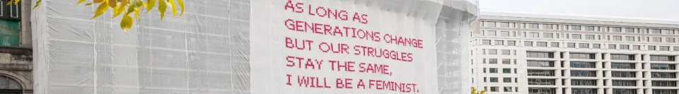 For each of Cibulka’s “SOLANGE” (German for “as long as”) public art installations, the artist considers the local environment and community. In developing the phrase for NMWA, the artist sought public input to help shape her message. From the submissions, a central theme emerged: calls for gender equality have been repeated for decades, yet many issues remain unresolved.